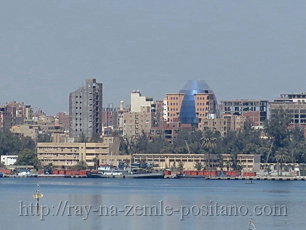 Канал проходит по пустыне, но ближе к Средиземному морю, левый берег становится с жильём и городами, в пальмах и зелени, и резко контрастирует с правым, жёлтым и пустынным.